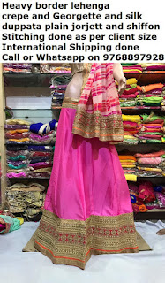 Heavy border lehenga..fabric is crepe and georgette and silk...dupatta is also plain georgette and chiffon Ready pieces available for dispatch.